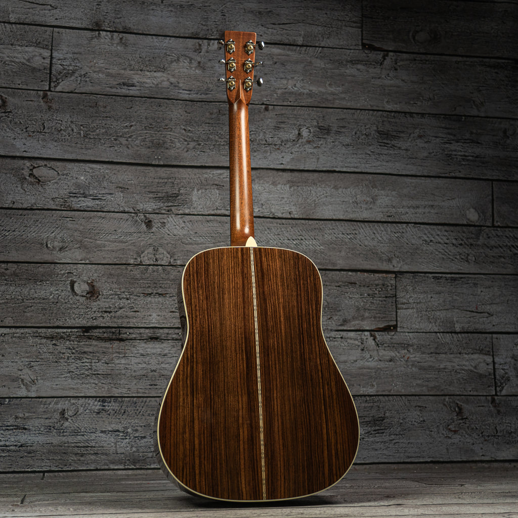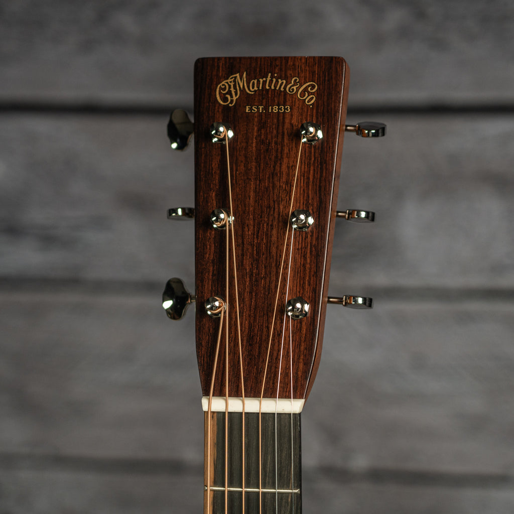 Handcrafted with a solid spruce top and solid East Indian rosewood back and sides, the D-28 produces a resonant voice that’s beautifully balanced for all playing styles. The satin neck, featuring a Golden Era (GE) Modified Low Oval profile, high-performance taper, and 25.4" scale length, ensures smooth, effortless playability. With antique white binding, an ebony fingerboard with mother of pearl dot inlays, an ebony bridge with bone pins, and nickel open gear tuners, the D-28 blends timeless craftsmanship with modern playability. Available in a variety of gloss and satin options, the D-28 is the guitar you can trust to unleash the artist within.
