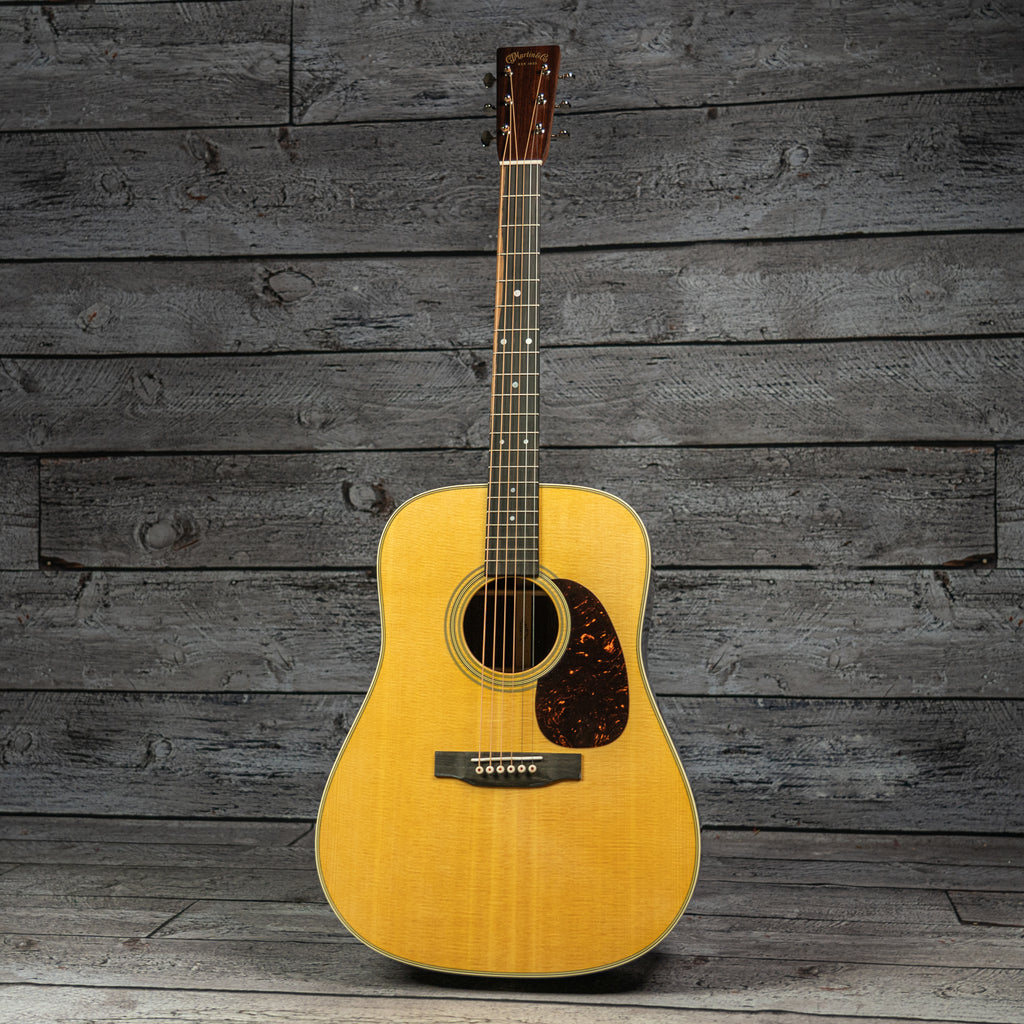 "The Martin D-28 is widely regarded as the most iconic acoustic guitar in the world, trusted by generations of players and played by countless legends across genres. Its Dreadnought body size and scalloped bracing delivers the bold, projective tone with strong bass, clear trebles, and rich overtones that has defined acoustic music for nearly a century.