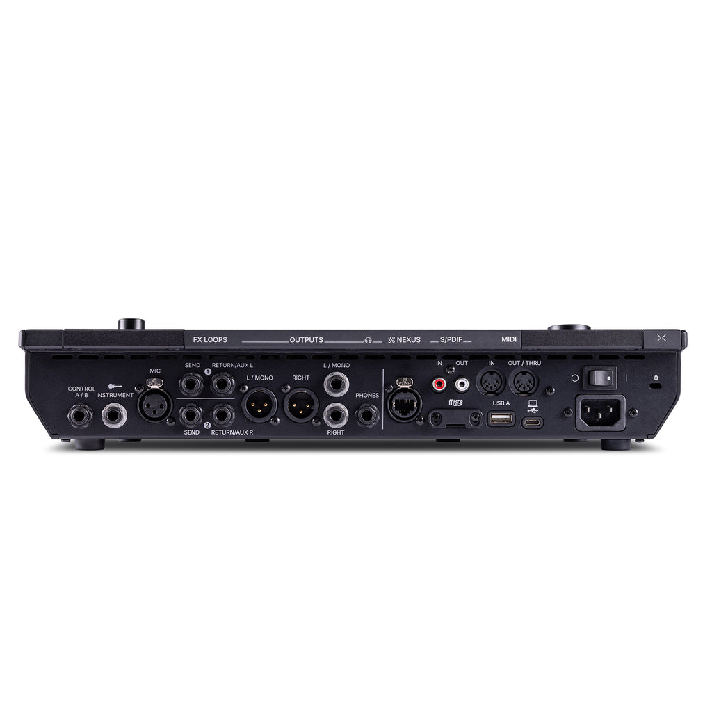 Helix Stadium Floor offers extensive connectivity, including various analog and digital audio inputs and outputs, MIDI (DIN and USB), multipurpose Control jacks, and a proprietary Nexus™ port for use with the optional Expand D10 unit and future peripherals. The Expand D10 provides Variax®, L6 LINK™, 8-channel optical, and other connectors. Multiple external footswitches and expression pedals, such as the optional EX2™, may also be used.